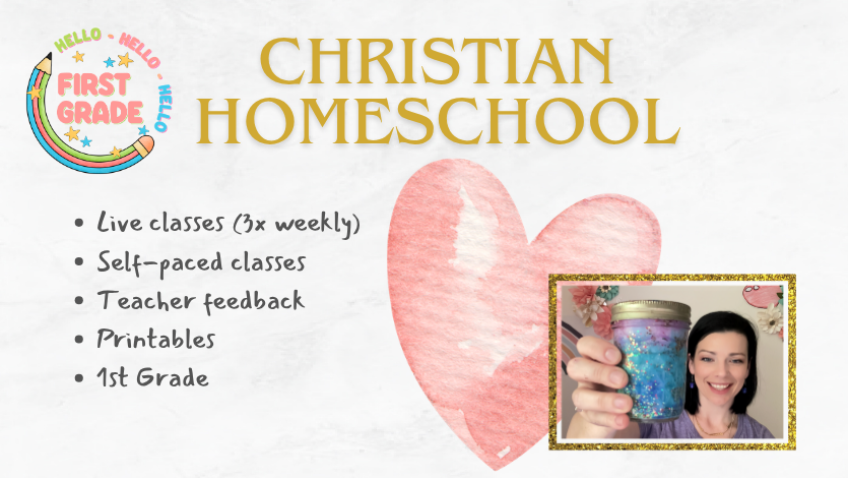 An all-in-one, Christian-based, self-paced & live 1st Grade course featuring 350+ video lessons, 300+ worksheets, quizzes, and teacher feedback.