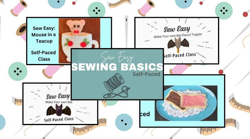 From fundamentals to fun — The “Hand Sewing Basics” course lays a solid foundation: threading, knotting, basic stitches, safety, fabric types. Then each of the project courses builds on that foundation with fun, tangible creations.